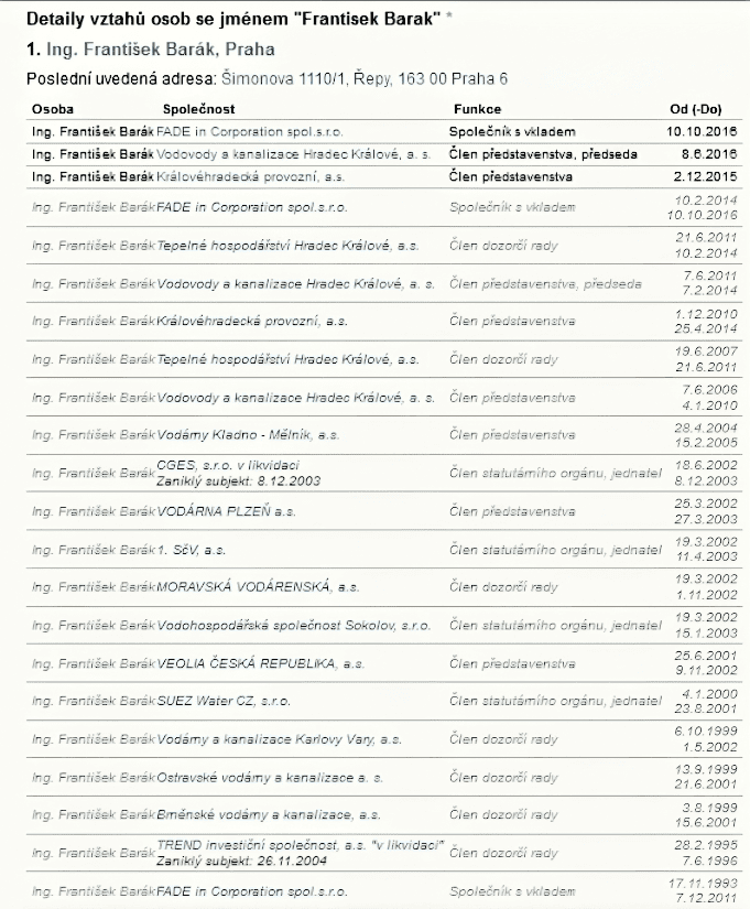 (pozn. Politici nepracují jako zaměstnanci Veolie. Působí a jsou placení jako členové orgánů společností  koncernů, které díky nim ovládly ziskové části původně městských vodáren. Př. Faltýnek ČSSD-ANO, Jiránek ODS atd..)
